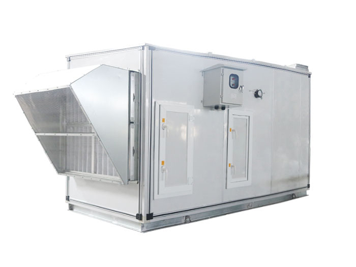 组合式空调机组功能段连接的核心材质包括高强度钢材,用于制作连接法兰与固定支架,钢材具备良好的结构强度与承载能力,能承受各功能段的重量与运行时的气流压力,确保连接牢固可靠,避免变形。 密封材质采用耐老化、弹性佳的橡胶或硅胶密封胶条,填充在各功能段的连接间隙处,能